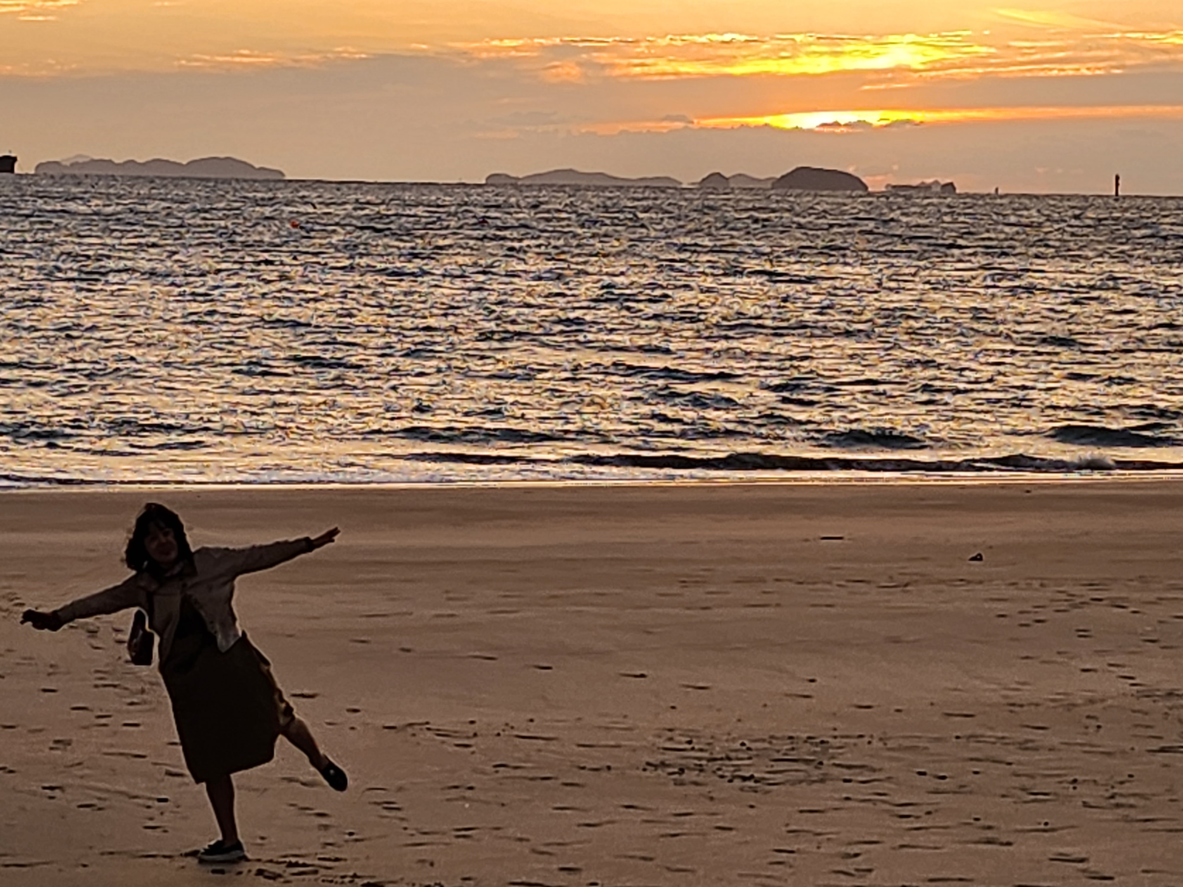 오후에 잠시 머물렀던 바닷가였는데, 해가 지는 바다는 너무나 다른 분위기로 우리 앞에 펼쳐져있다.