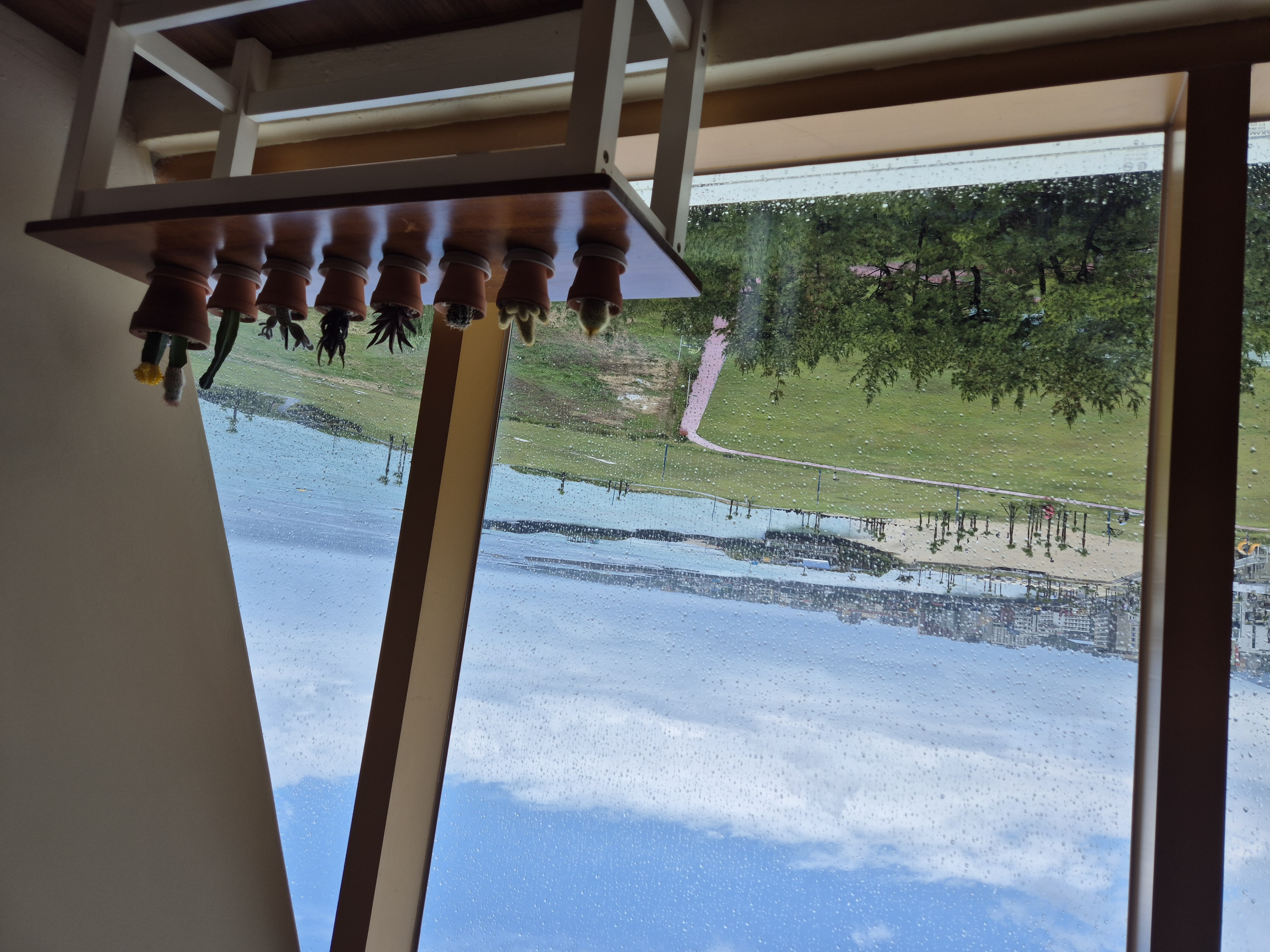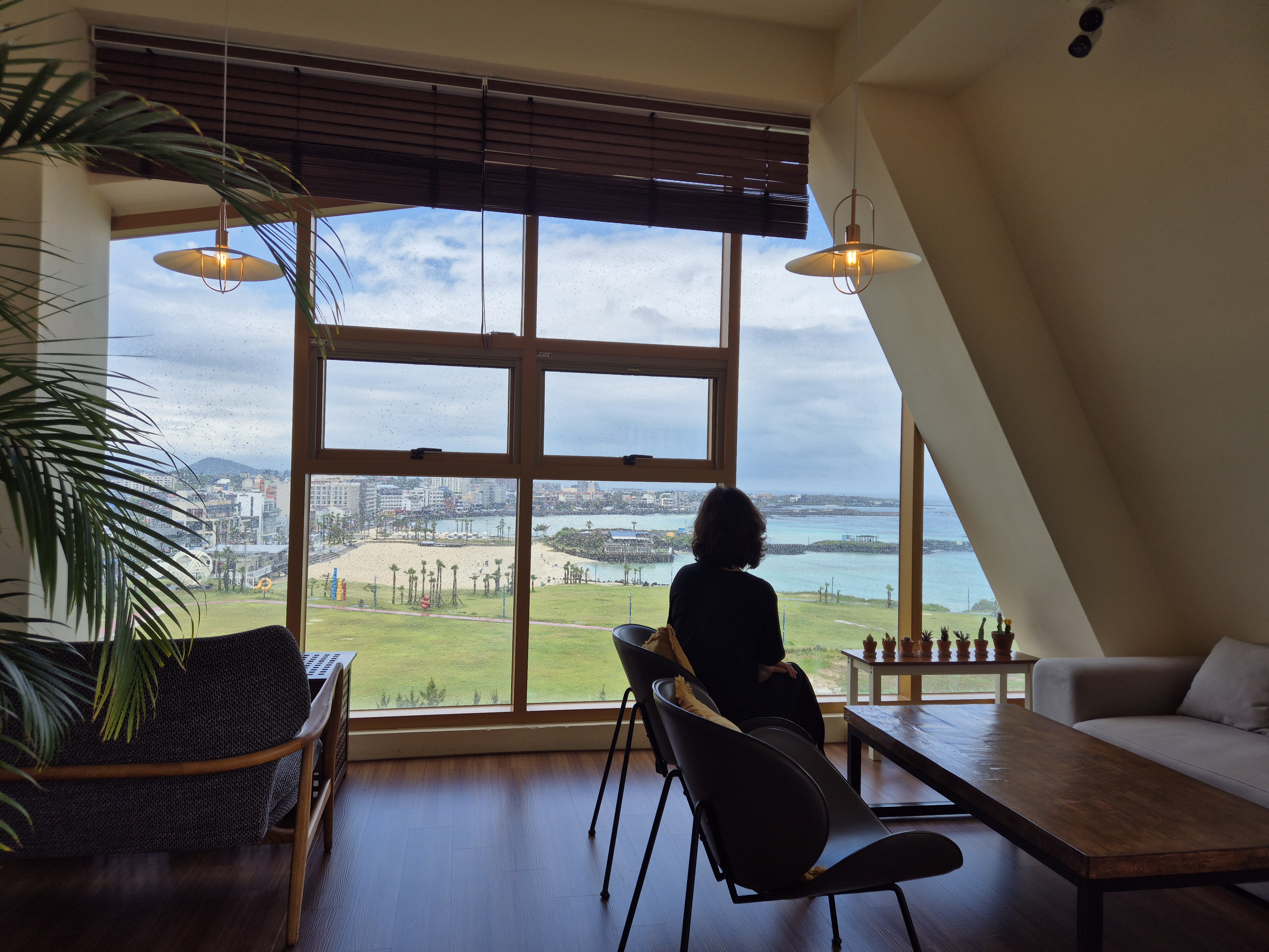 비 내리는 창가에 앉아 옥빛 바다를 바라보며 커피향에 취해 본다.
