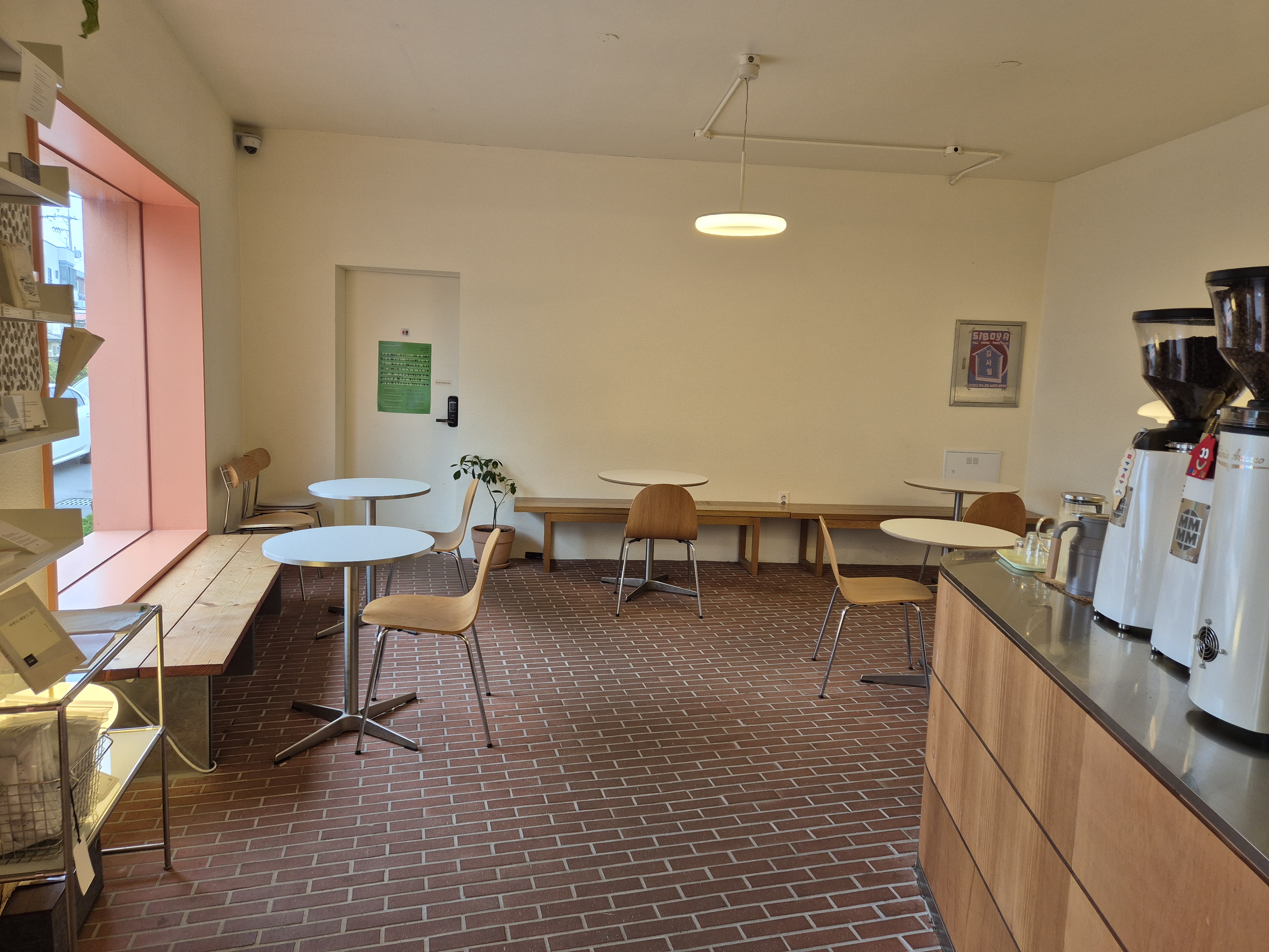 빨간 벽돌로 단순하고 깔끔하게 지어진 카페다.