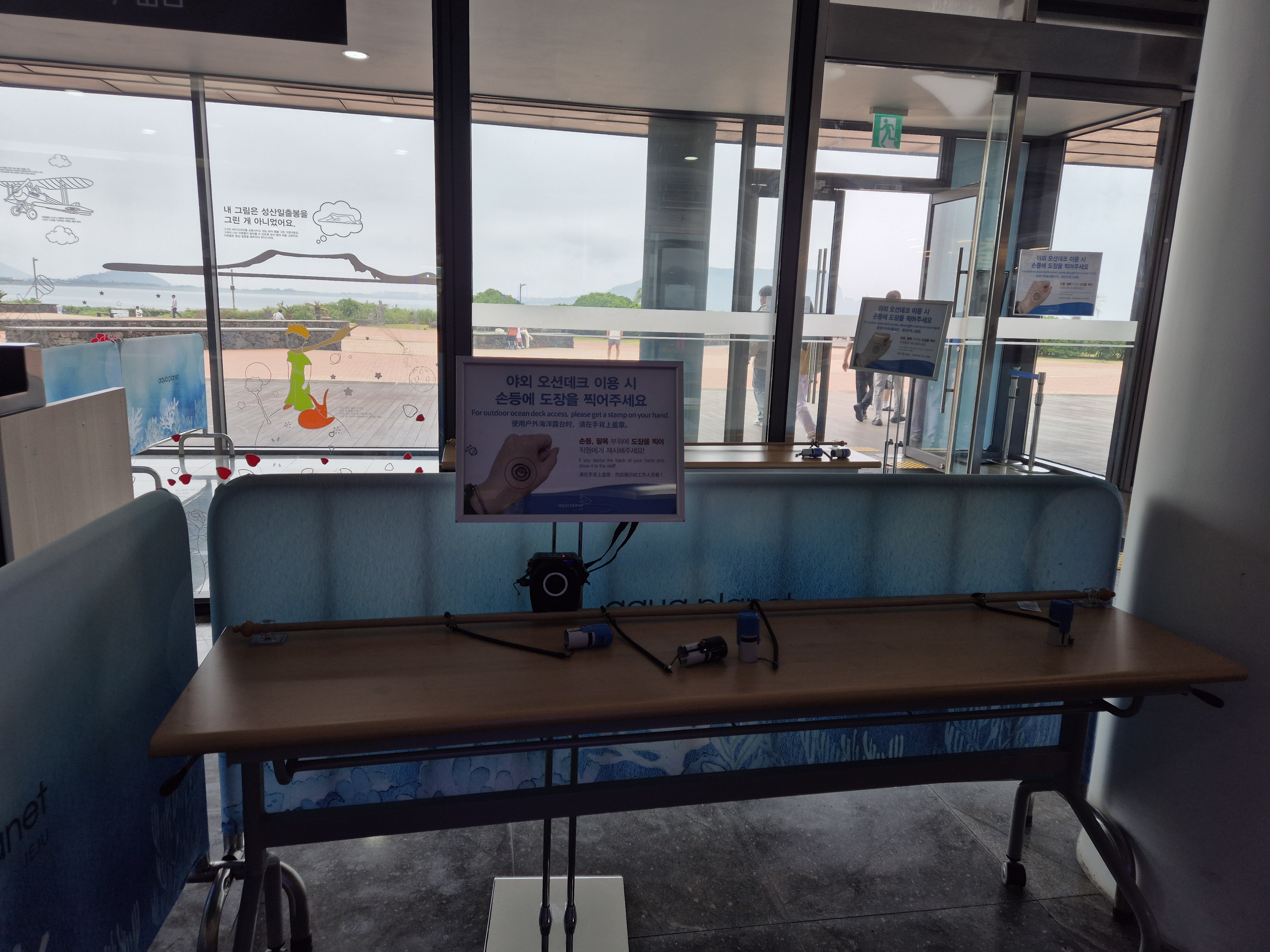 나갔다 들어오려면 손 도장을 찍어야 한다.