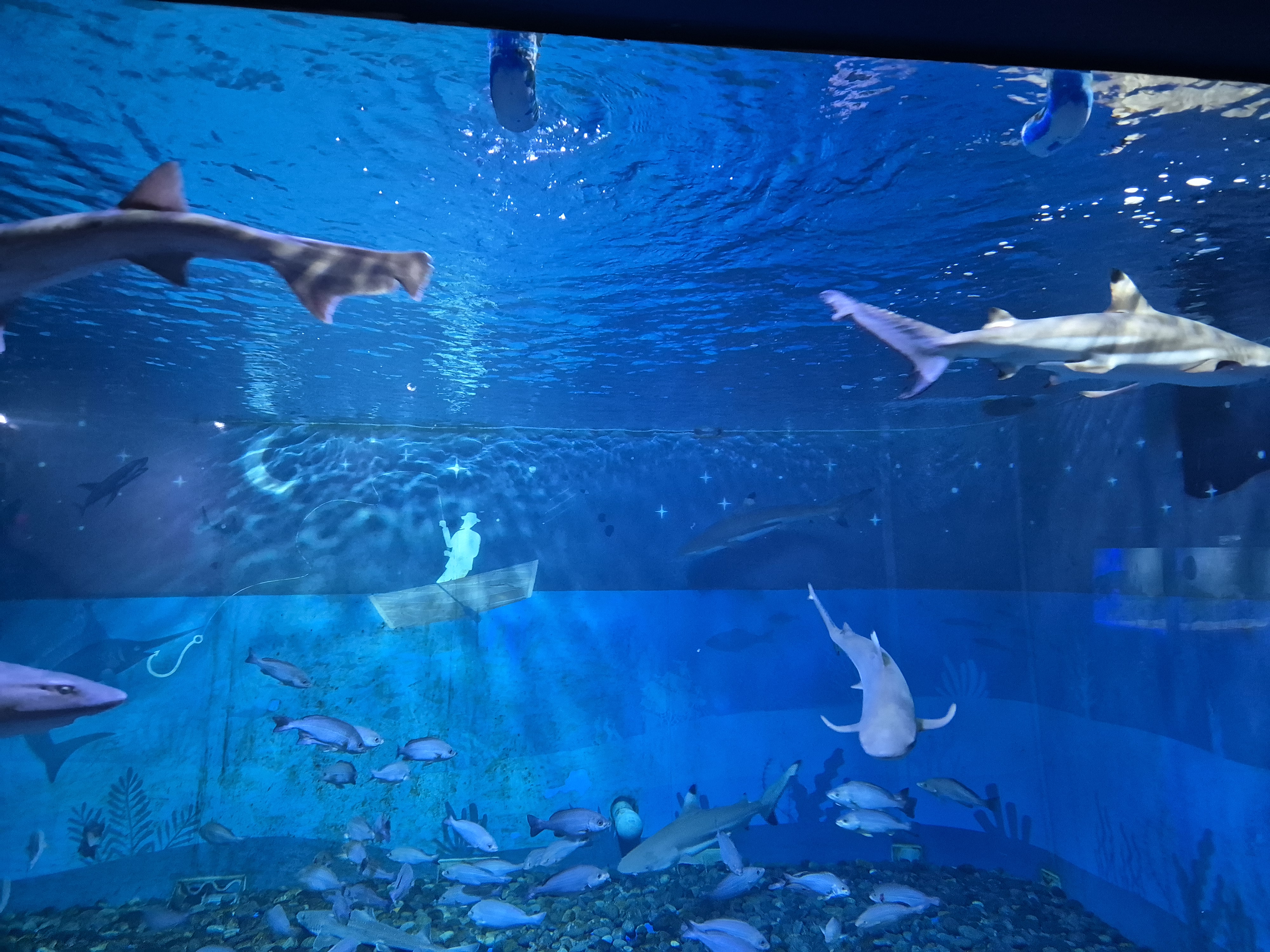엄청 큰 대형 수조인데 먹이를 주는 쇼를 한다.