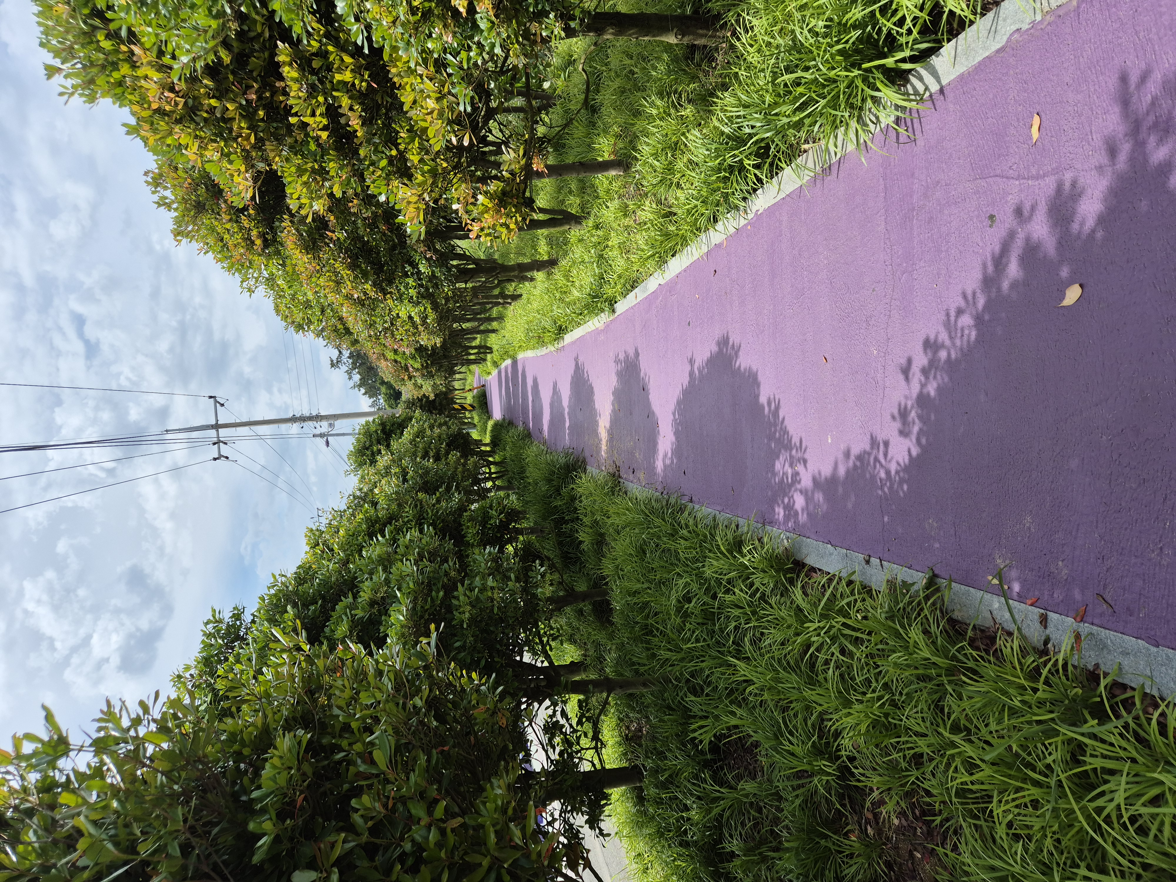 다리를 건너서 산책길도 보라색이다.