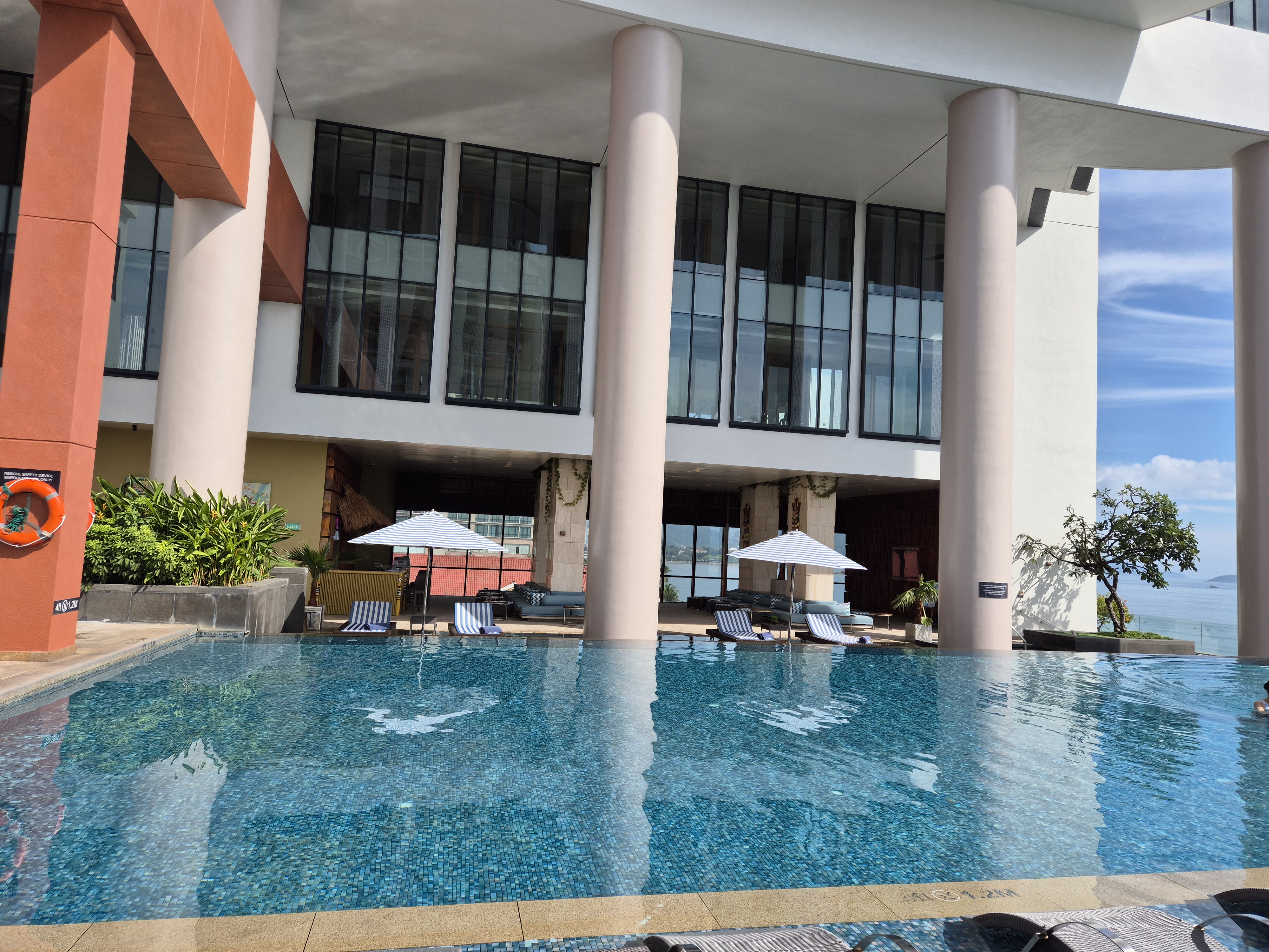 해변을 산책하고 인피니트풀로 수영을 하러 온다.