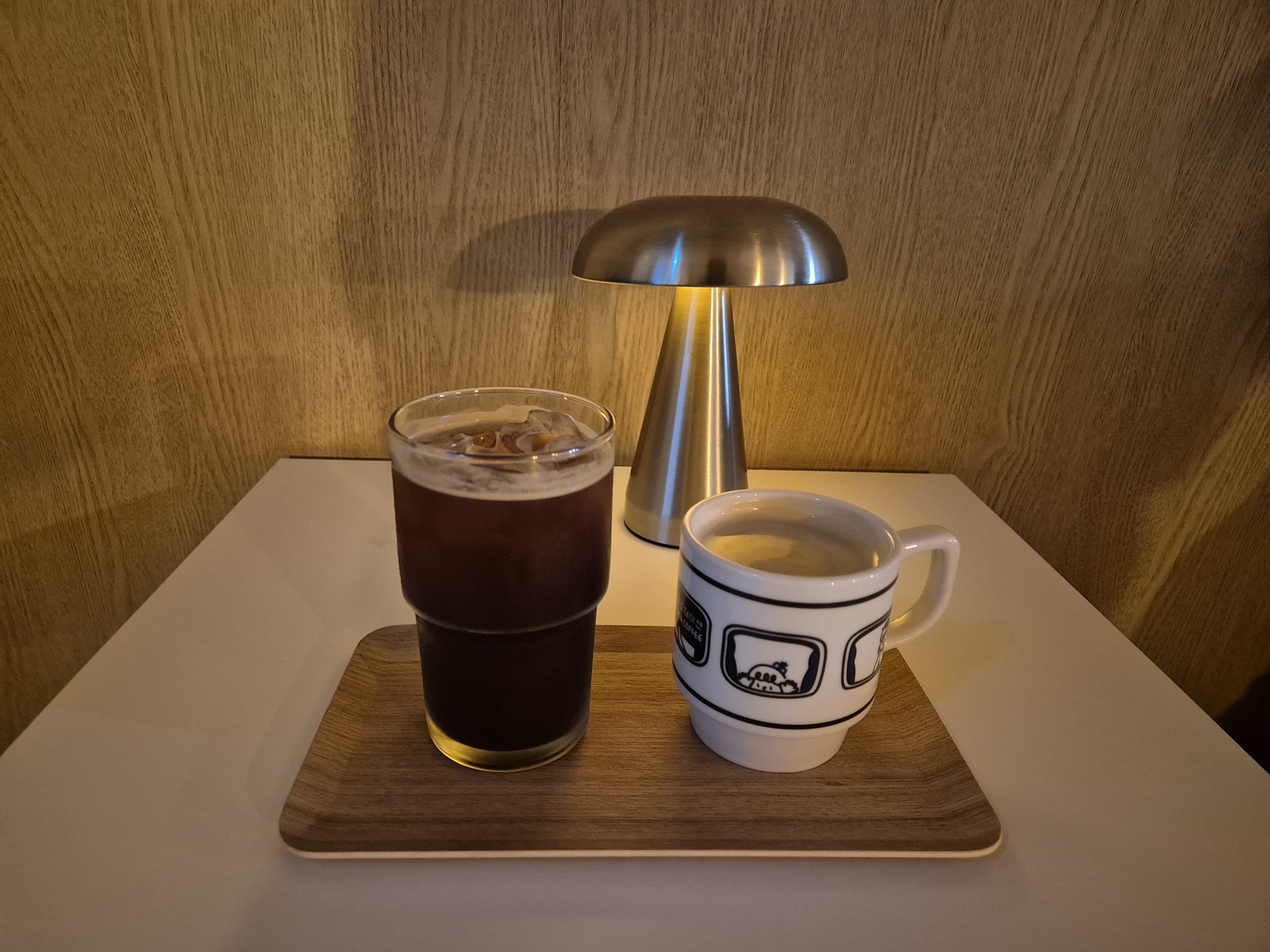 조명 아래 커피는 내 맘도 모르고 그저 평화롭다.